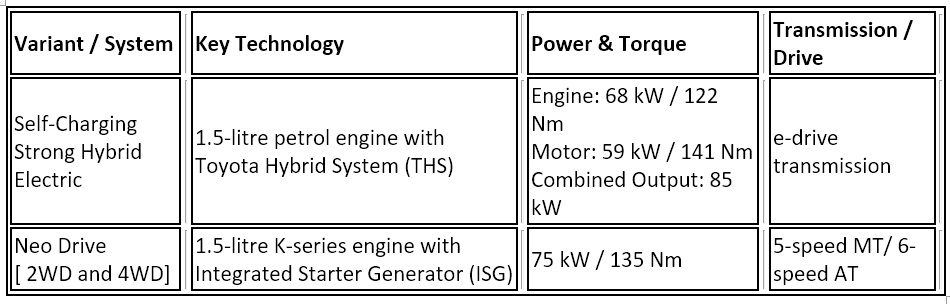 Safety remains integral with six airbags, Vehicle Stability Control, Hill Hold Control, all-wheel disc brakes, a 360-degree camera and ISOFIX mounts. The ownership experience is supported by a comprehensive warranty package, including a three-year or 100,000-kilometre standard warranty, extendable up to five years or 220,000 kilometres, along with five years of roadside assistance. The hybrid battery is covered by an eight-year or 160,000-kilometre warranty. To further enhance accessibility, Toyota is offering benefits of up to INR 100,000, exchange bonuses and flexible payment schemes like Buy Now, Pay Later. Prices start at INR 1,094,000 (ex-showroom).