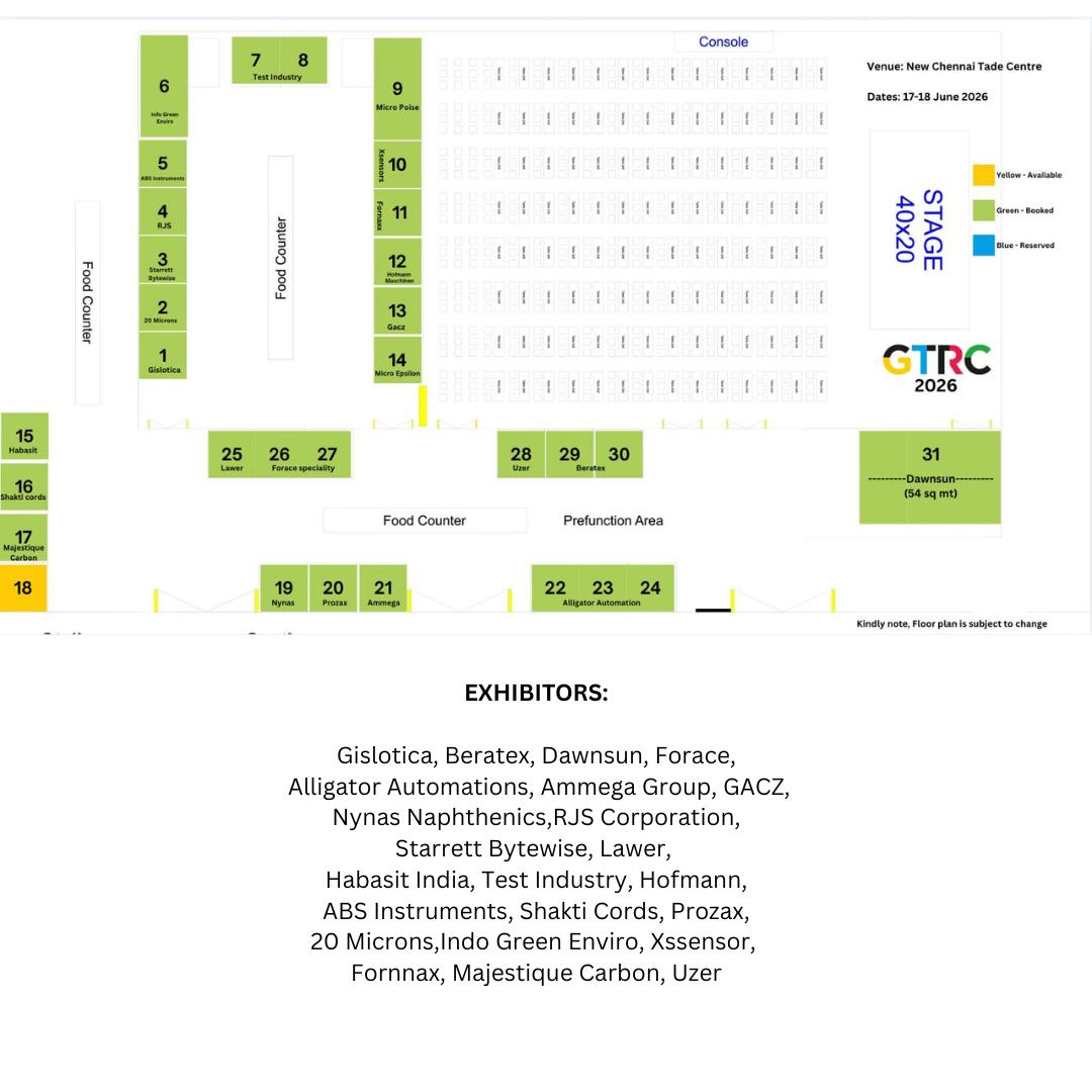 GTRC 2026 will focus on critical challenges and opportunities in the tyre industry, including sustainability, automation, recycling, digitalisation, new mobility and evolving consumer demands. With a series of expert-led presentations, panel discussions, attendees will gain insights into cutting-edge technology, best practices and emerging innovations. The conference will also feature an extensive exhibition, allowing participants to explore the latest advancements in tyre technology, materials, manufacturing processes and machinery.